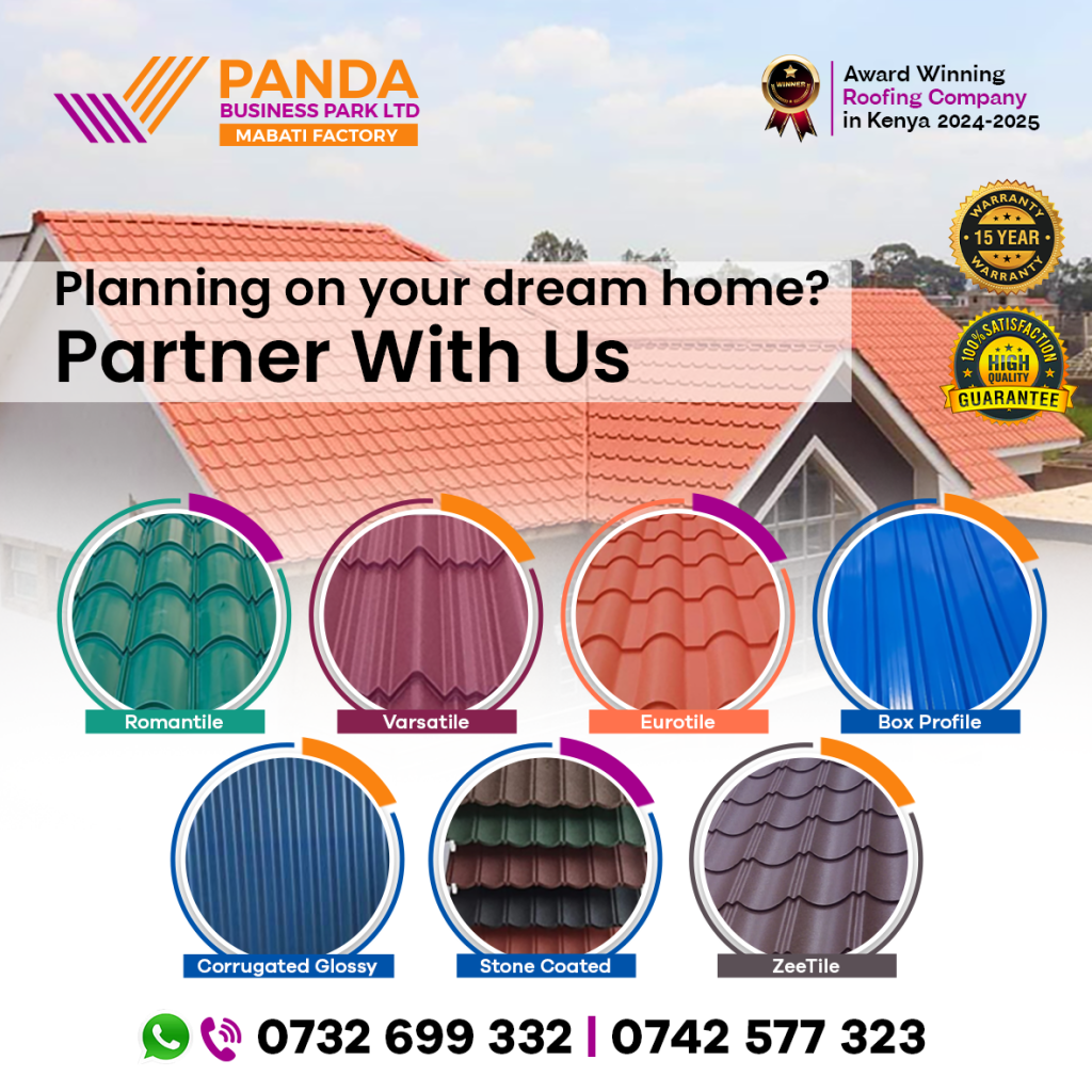 Driven by a commitment to customer satisfaction, we provide personalized roofing solutions, dependable service, and competitive pricing to ensure every client finds the perfect fit for their project. Whether you’re building, renovating, or upgrading, Panda Business Park Mabati Factory is your trusted partner in roofing excellence.